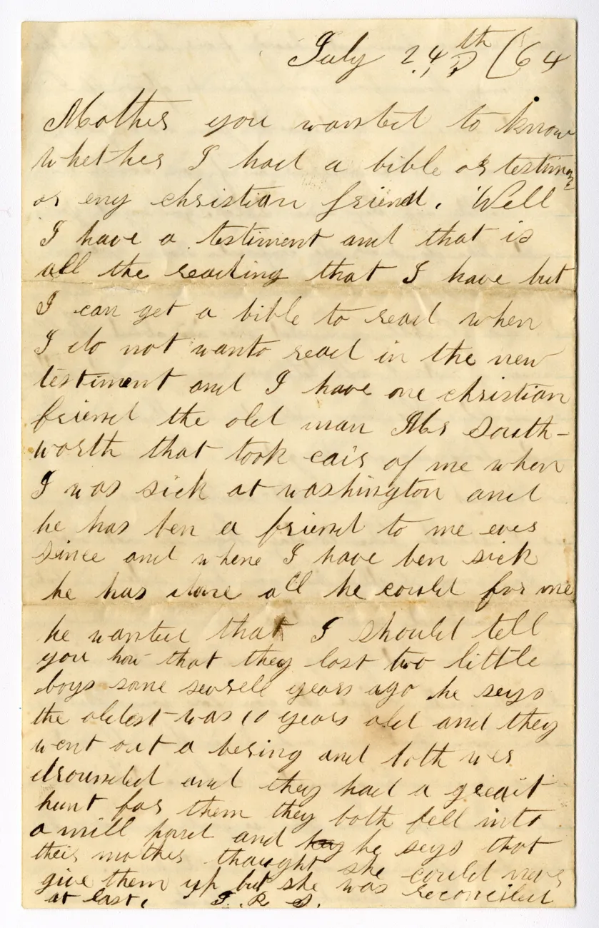 Mother you wanted to know whether I had a bible or testiment or eny Christian friend.