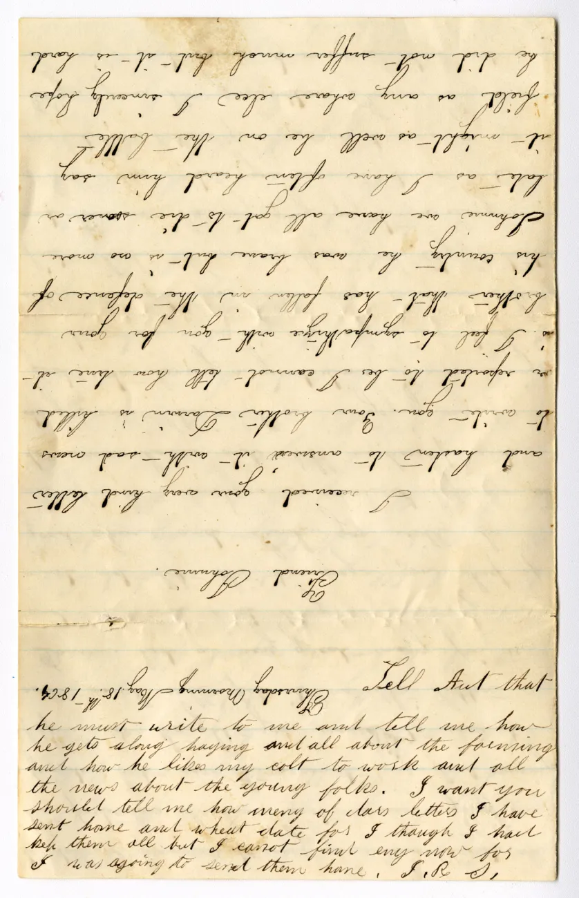 Note--This letter is written on page 4 and the top of page 1 of a May 18, 1864 letter from John Sunderland's friend Atlanta LeNorthrup.