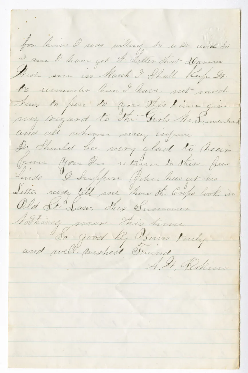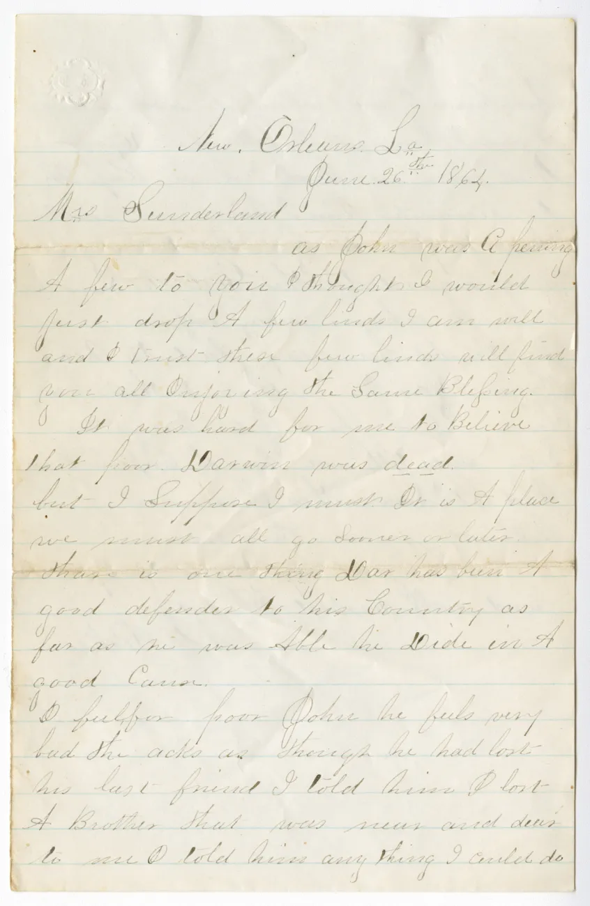 It was hard for me to believe that poor Darwin was dead but I suppose I must. It is a place we must all go sooner or later. Thare [there] is one thing Dar has been[.] A good defender to his Country as far as he was able[.] He dide [died] in a good cause.