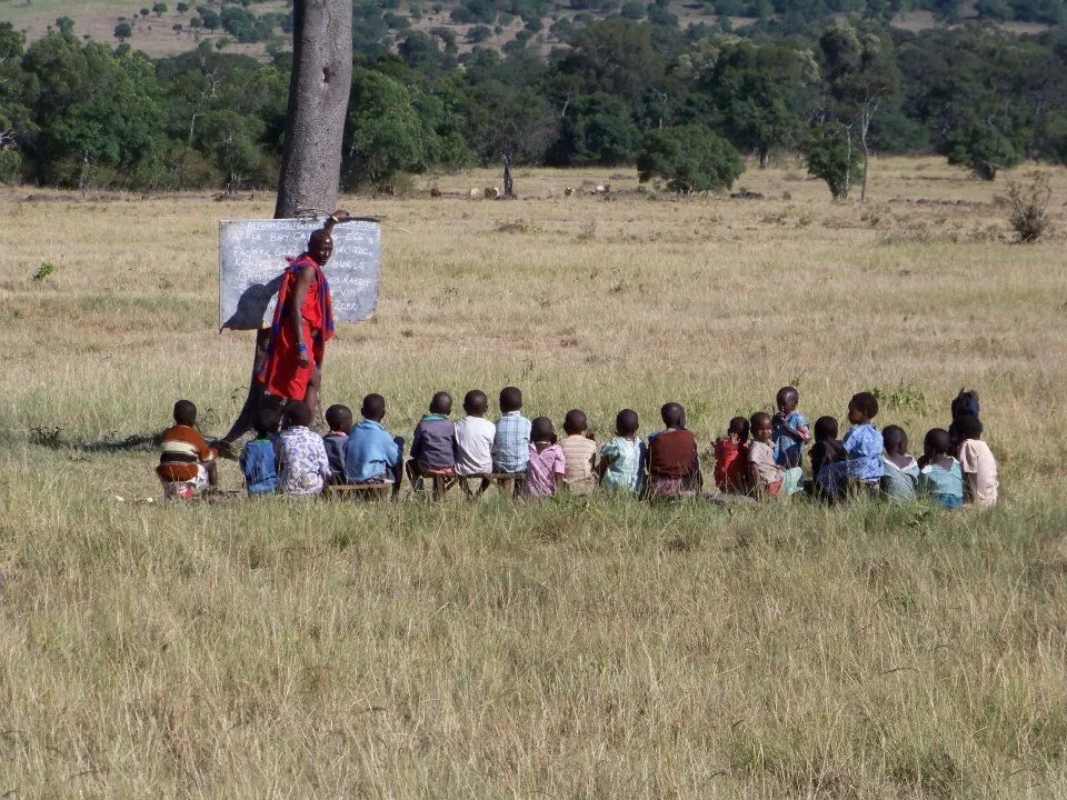 Children being taught in an outdoor classroom.